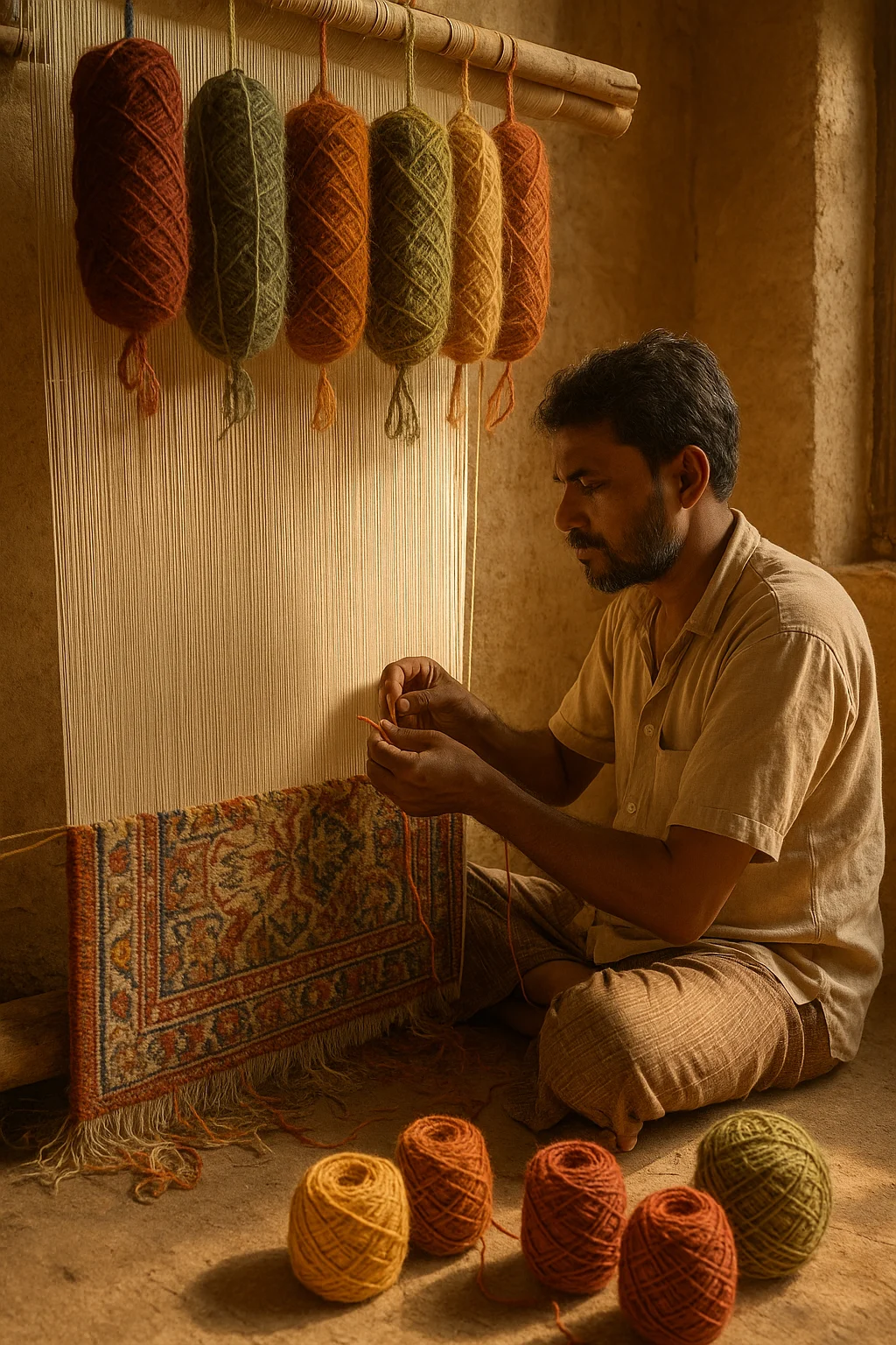 Bhadohi’s weaving traditions shape our finest rugs and floor art. From loom to living space, the process is steeped in care and craftsmanship. Each weave reflects the rhythm of skilled hands and ancient patterns. Generations of artisans carry forward this legacy with quiet mastery. We partner with local weavers who honor both history and innovation. Natural fibers, time-honored techniques, and enduring quality define the work. It’s not just rug-making — it’s cultural storytelling in motion. Inspired by the land, created with intention. This is Bhadohi, woven into every Vellora piece.